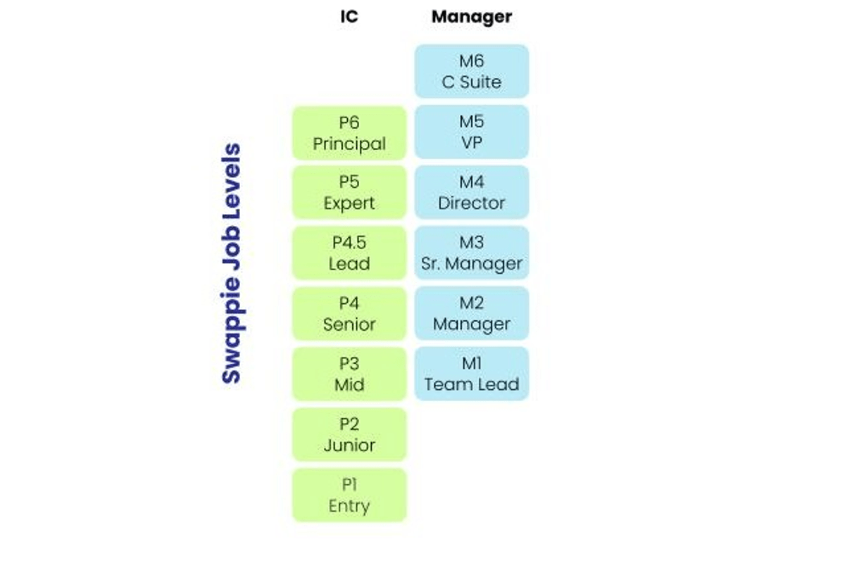 Job levels help us differentiate expectations and responsibilities in similar roles based on competency, maturity, expertise, skills and knowledge. They're crucial for setting clear expectations, goals, and pay evaluations. These levels also guide Swappie’s career growth plans, enabling us to outline differences in responsibilities and expectations across roles.